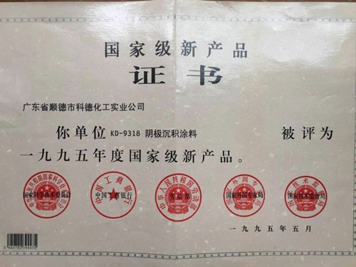 1994年,研發的電泳涂料產品獲得廣東省科委評定為“省級重點新產品”,1995年被國家五部委評定為“國家級新產品”,其成立初期的研發實力,不可小覷。