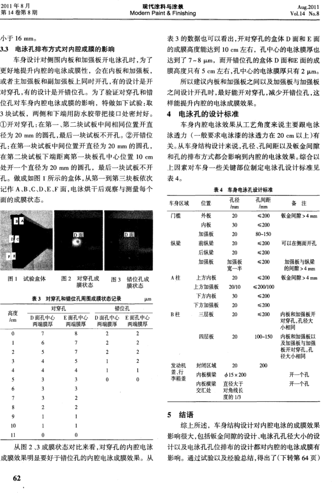 淺談車身結構設計對內腔電泳成膜的影響