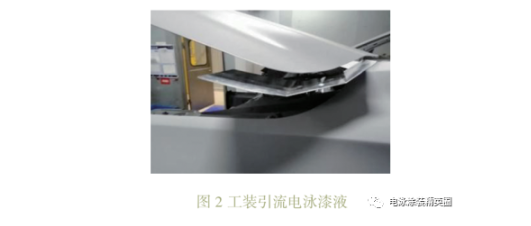 對于無法安裝拇指膠的位置,如翼子板、裙邊等,可制作工裝,將溢出的電泳漆液接住、引流,從而減少電泳漆液流淌至車身表面形成電泳流痕,如圖2所示。